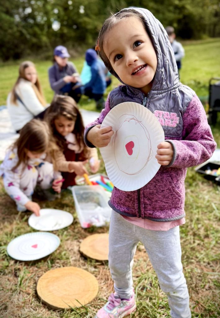 The South Fayette Township Library’s Preschool STEAM program was happy to be invited to conduct a STEAM program outreach. The children used their senses to learn about trees and leaves as they explored this outdoor space. There was so much to see, hear, touch, and smell. Ms. Judy, the South Fayette Township Library STEM Programmer, provided activities which included both tree and leaf science, songs, a story and crafts. The children were able to examine the parts of a tree; including a cross section of a tree trunk (called a tree cookie), bark, pinecones, pine needles and various leaves. They learned that each ring displayed on the cross section of the tree trunk represents 1 year of the tree’s life. The children then designed a tree cookie with rings to represent their age! They also had fun investigating leaves by observing the different sizes and shapes and created leaf art with leaf rubbings.