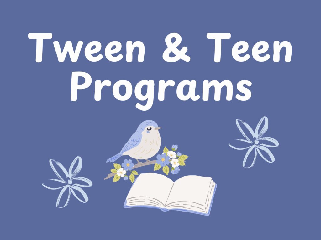 News & Events Spring programs at the Library! March 1, 2026March 14, 2026 bagwellk 1988 Views Click HERE to view/download the Spring 2026 program brochure. Registration is OPEN! Children’s Programs Tween & Teen Programs Adult Programs EVENT CALENDAR – All Programs GET A LIBRARY CARD